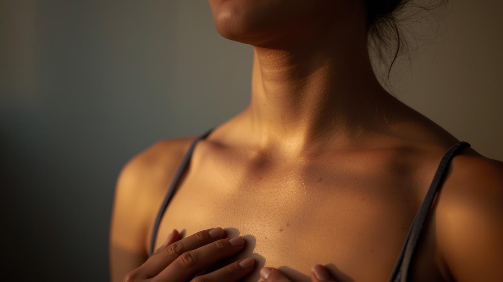 - 胸式呼吸が浅く速くなりすぎると、交感神経が過剰に働き首・肩の緊張が高まる。